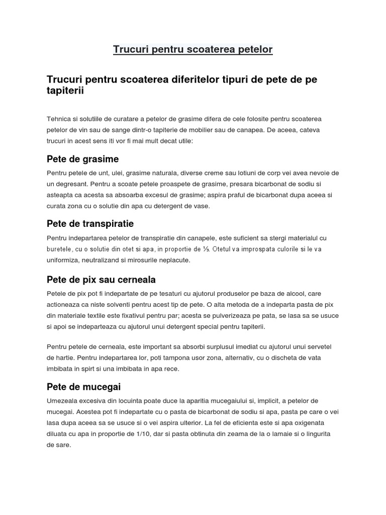vizitati articolul complet aici : https://www.sanatatenonstop.ro/bicarbonat-de-sodiu-beneficii-utilizari-si-retete/ Draperiile si perdelele, stropite cu pulbere uscata de bicarbonat de sodiu, isi regasesc culoarea naturala. La fel si cu piesele de imbracaminte, adesea patate de parfum sau deodorant. Pulverizeaza pe geamuri, apoi sterge cu o carpa uscata.